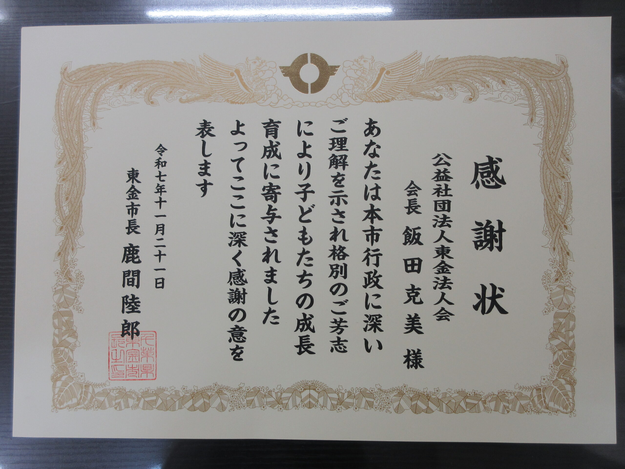 2025.11.21 活動報告 東金市より感謝状を授与されました 東金市より感謝状を授与されました。 日頃からの積極的な社会貢献活動が評価されたものです。 東金市より感謝状授与東金市より感謝状授与東金市より感謝状授与 前の記事を読む 一覧に戻る 次の記事を読む
