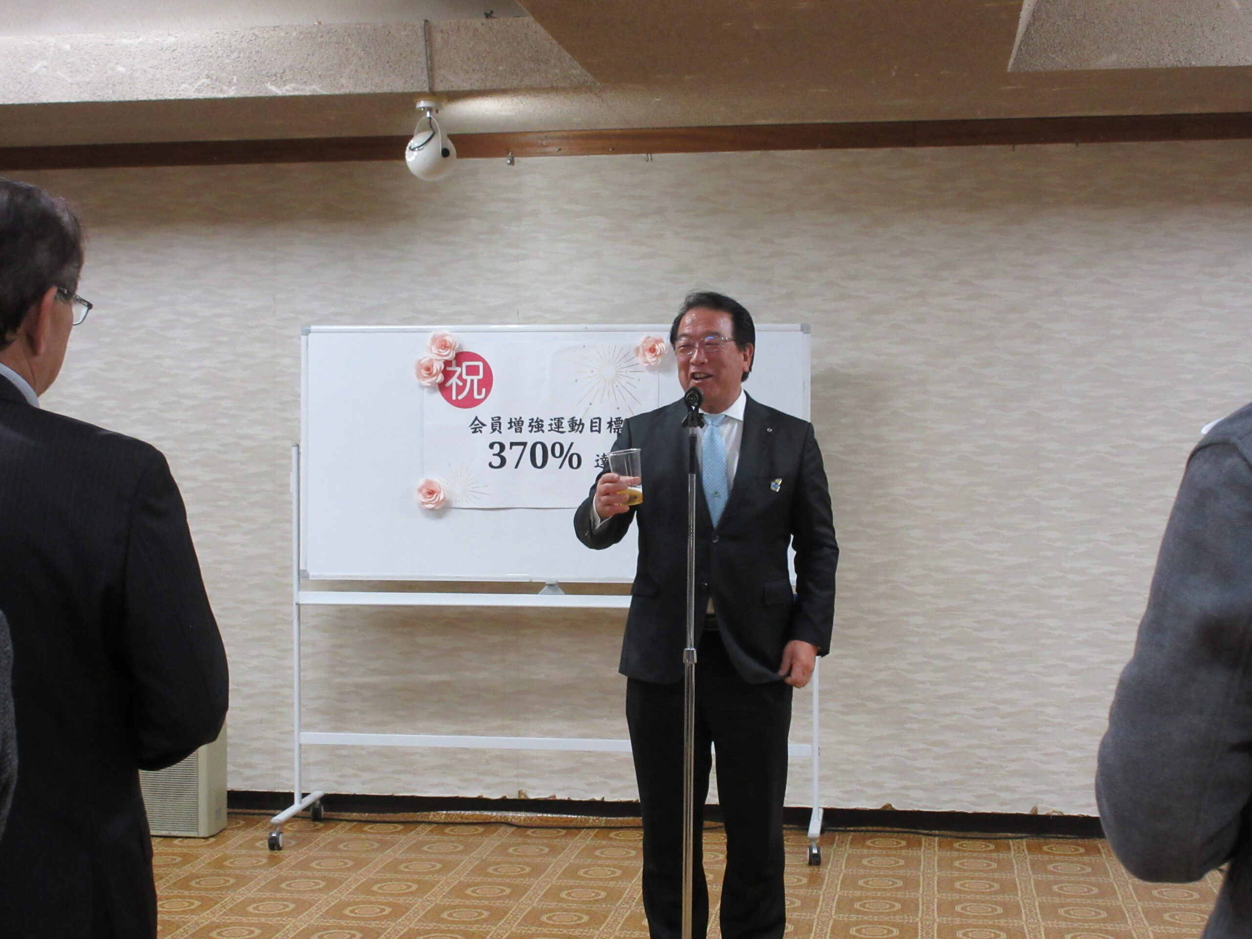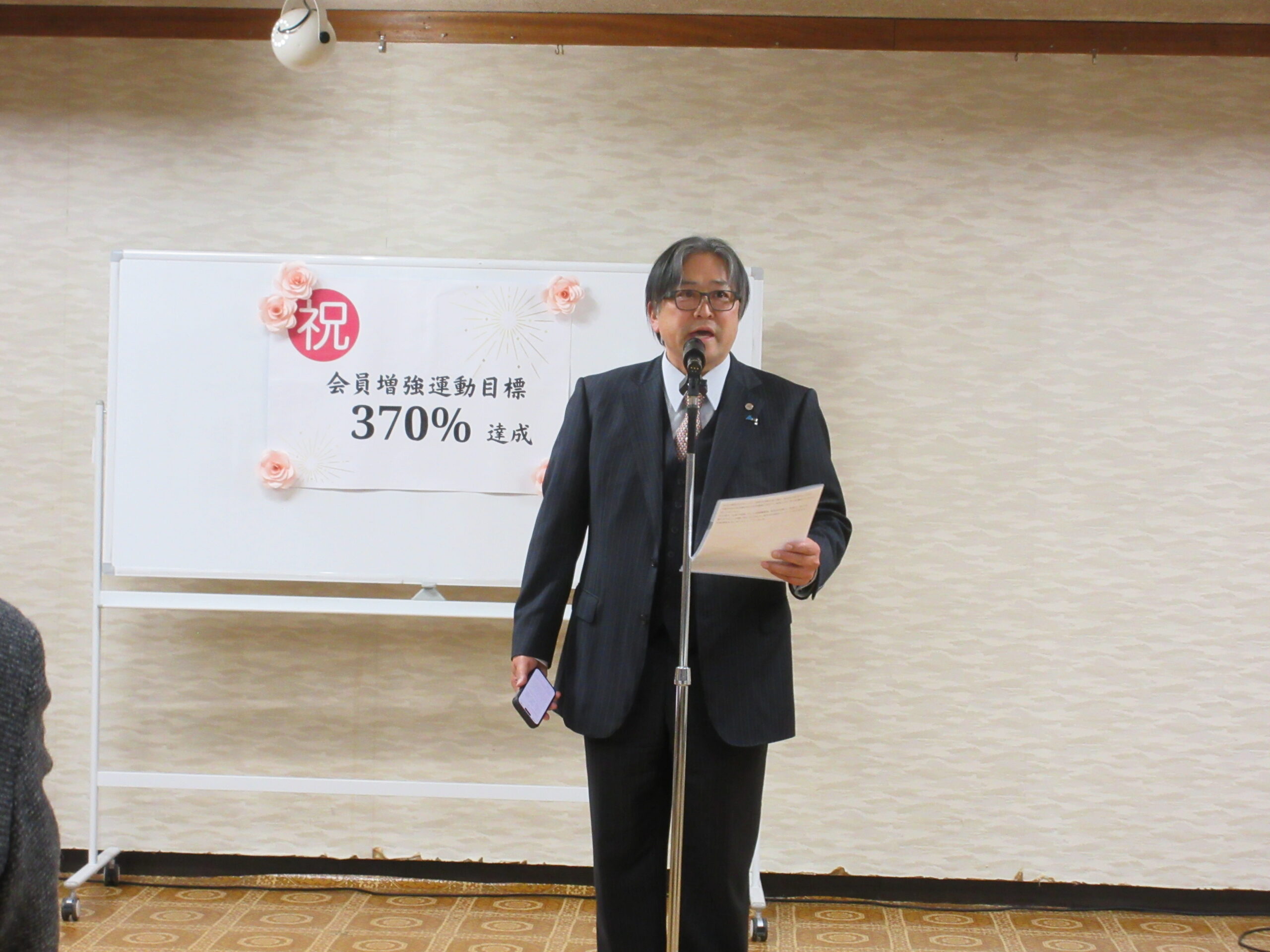 2026.01.19 活動報告 会員増強運動結果報告会 会員増強運動結果報告会 令和7年度会員増強運動では、目標比370%を達成し当初の目標を大幅に上回り10年連続で県下ナンバーワンとなることができました。 会長あいさつ浅岡九十九里町長 乾杯東金税務署 清水署長ご挨拶事務局より成果発表ご参加のみなさまご参加のみなさま組織委員長あいさつ 前の記事を読む 一覧に戻る